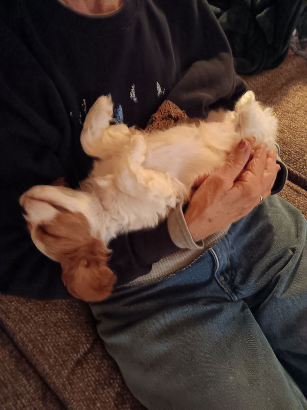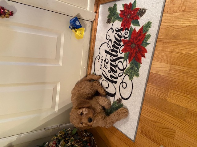 This is skippy (lollipop). We got Skippy from Nora last February. He just turned one in December. I can’t imagine our family without him! He has been a blessing and a wonderful addition to our family. Nora is fabulous to work with and highly recommend her pups. Thank you Nora!
