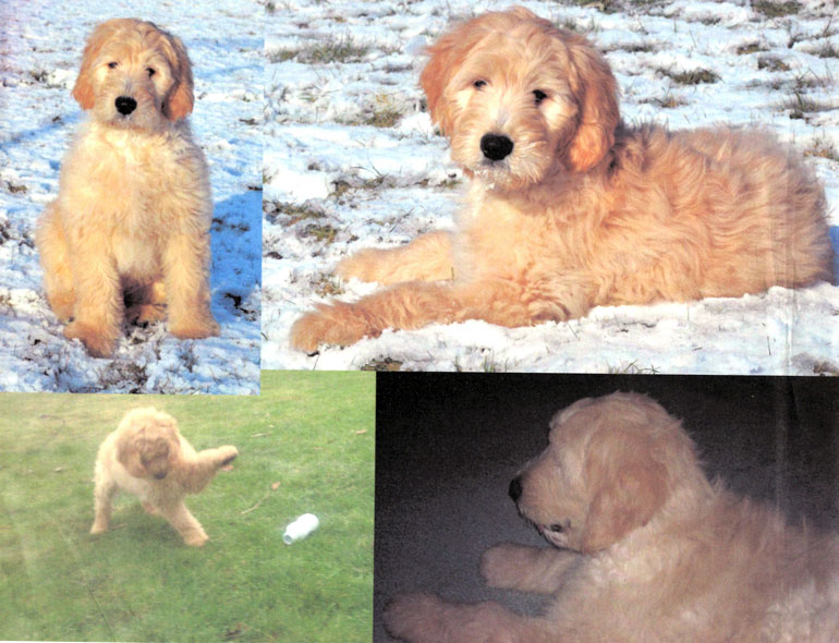 Hello, I wanted to send an update of Twizzler we named her Joi my family and I are so excited and appreciate the fact that we got a wonderful dog she's awesome she's thriving she's playful she love's kids and the SNOW. Joi is 11wks old now Norma you did an Incredible job on breeding wonderful goldendoodle puppies. Yours truly,